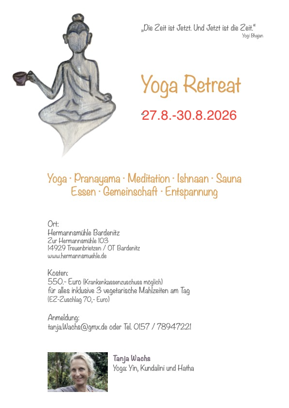 Hermannsmühle: 27.8-30.8.2026 (Kosten 550.- im DZ und 620.- im EZ für drei Nächte inklusive Vollverpflegung)